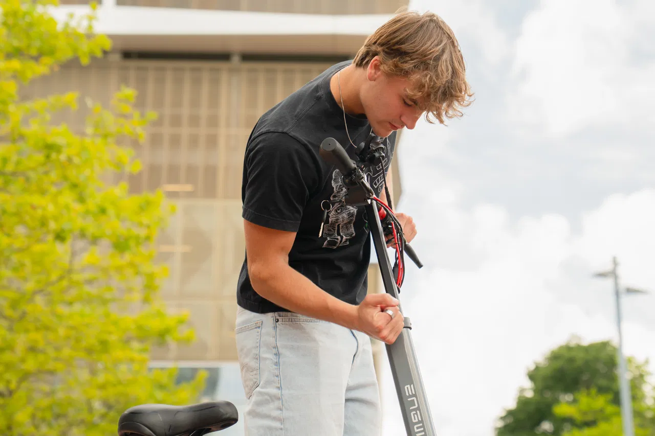 Wij monteren de e-step en installeren de peilzender vooraf. Daarna bezorgen we ‘m gratis aan huis. Tijdens de levering sluit je samen met de bezorger de verzekering af.